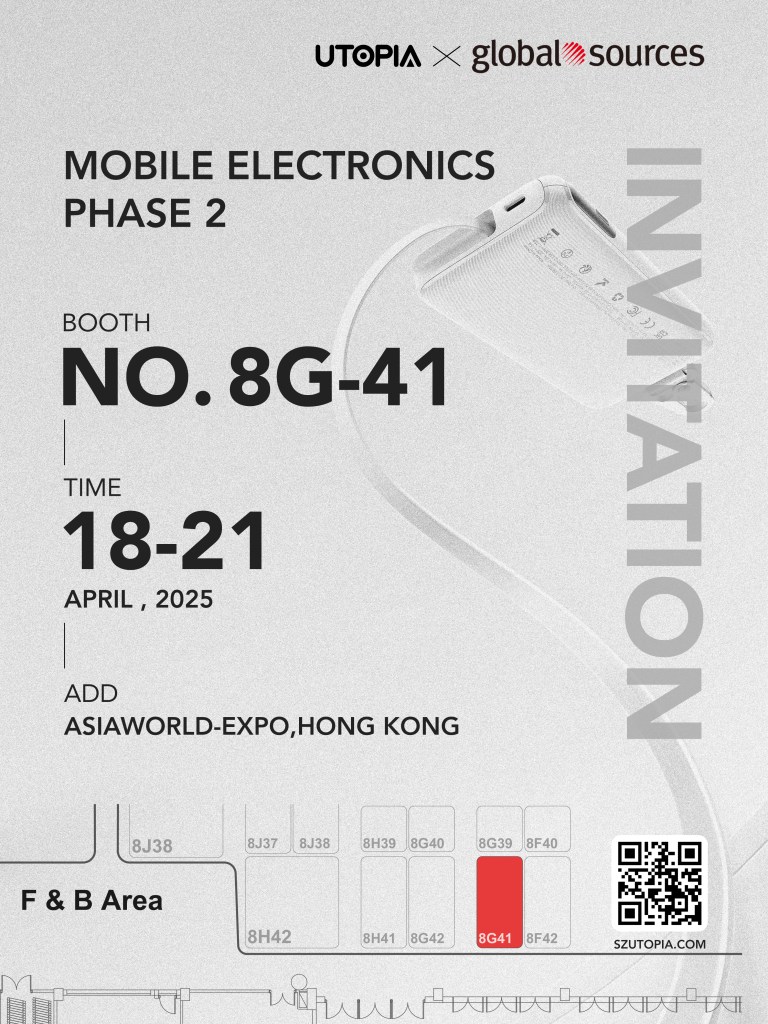 Global Sources Mobile Electronics is the world’s largest sourcing fair for mobile and smart device accessories. As a leading manufacturer of high-performance charging solutions, Utopia will showcase the latest advancements in fast-charging power banks, wireless chargers, and compact energy solutions tailored for business buyers and tech enthusiasts.